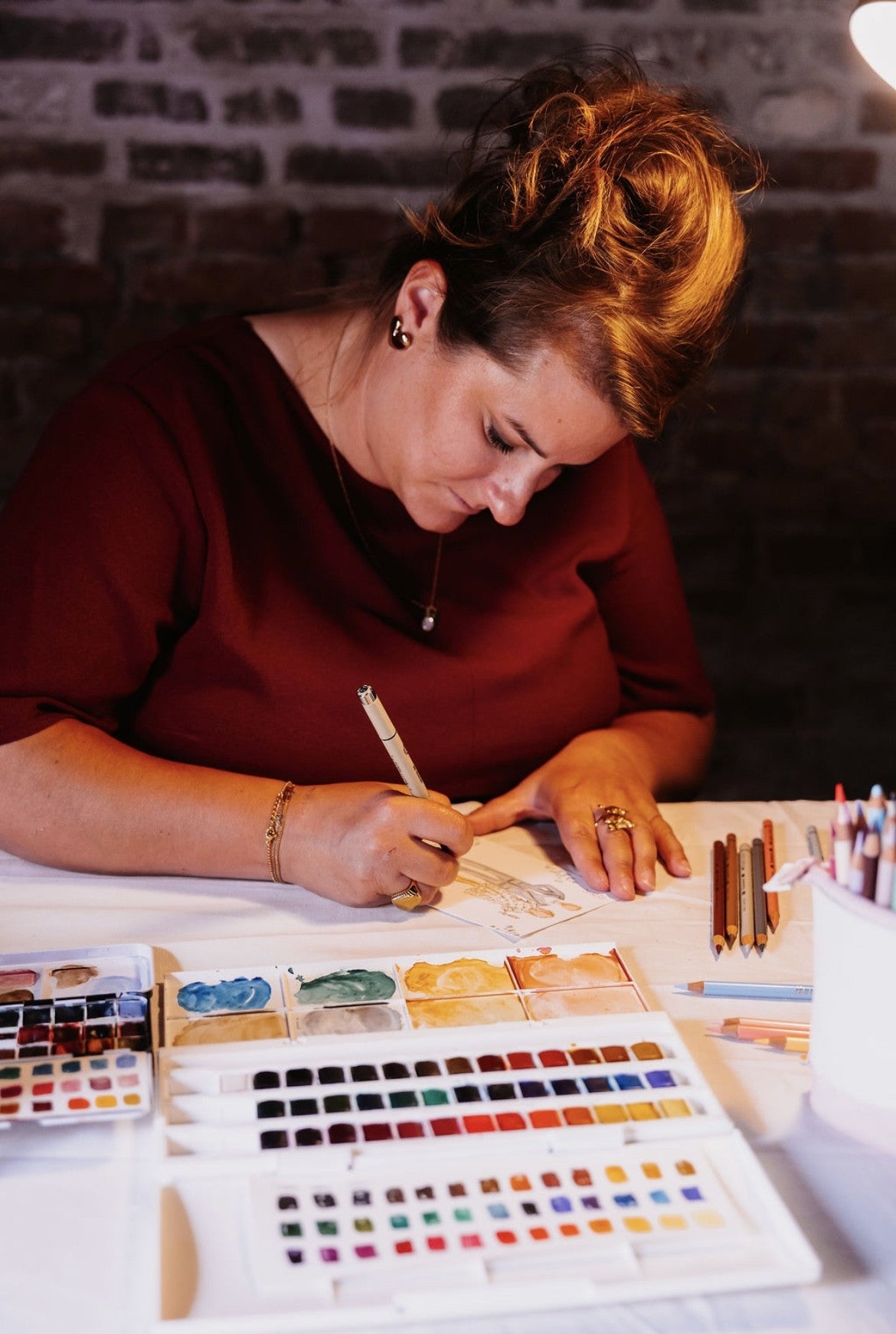 Hierbij werk ik de resterende illustraties nadien verder uit in mijn atelier, op basis van de genomen foto’s, en worden ze achteraf opgestuurd.