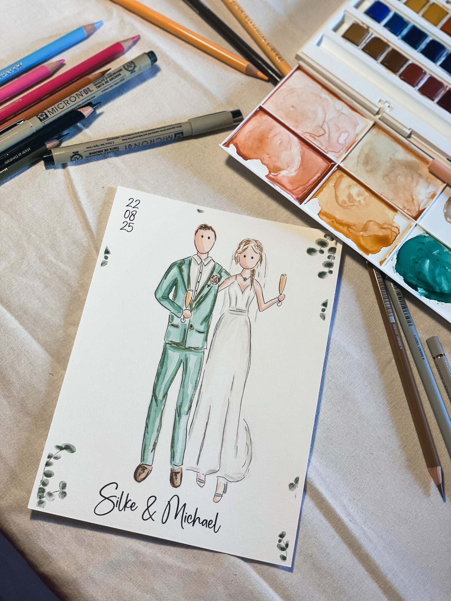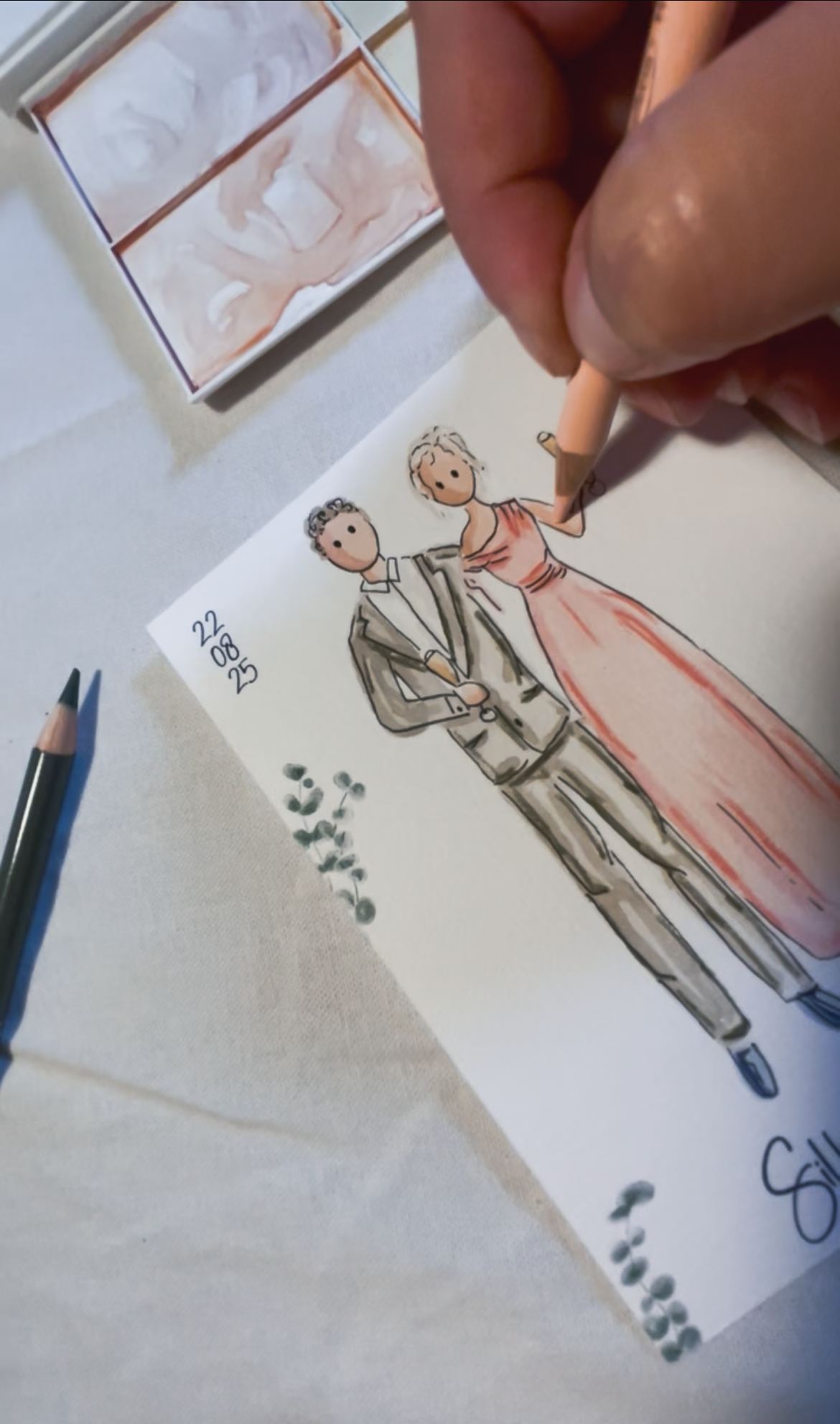 Geef jouw gasten een onvergetelijke ervaring met een persoonlijk aquarelportret, live geschilderd tijdens jouw event of huwelijk. Terwijl het feest volop doorgaat, ontstaat er voor elke gast een uniek kunstwerk dat ze na afloop mee naar huis nemen – een tastbare herinnering om voor altijd te koesteren.