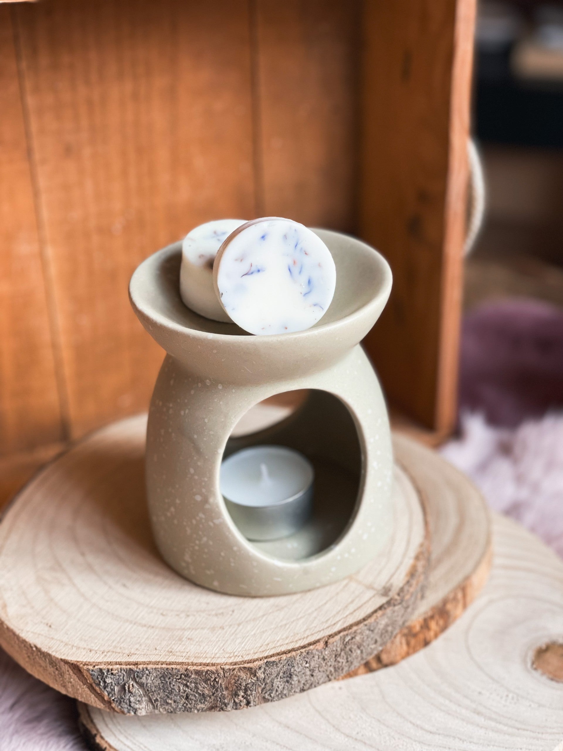 Breng rust en elegantie in je interieur met deze keramische meltsbrander in een licht, zacht groen-beige tint. Het strakke en minimalistische design zorgt voor een moderne uitstraling die moeiteloos in elk interieur past.