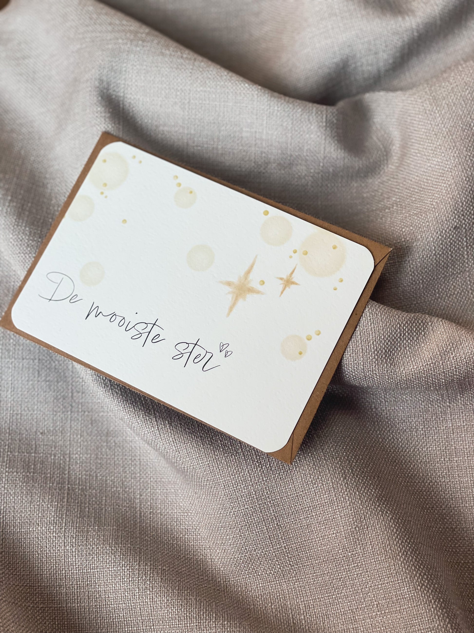 Wenskaarten in A6 formaat met ronde hoeken en bijpassende kraft enveloppe. De kaarten zijn eigen ontwerp en illustratie.