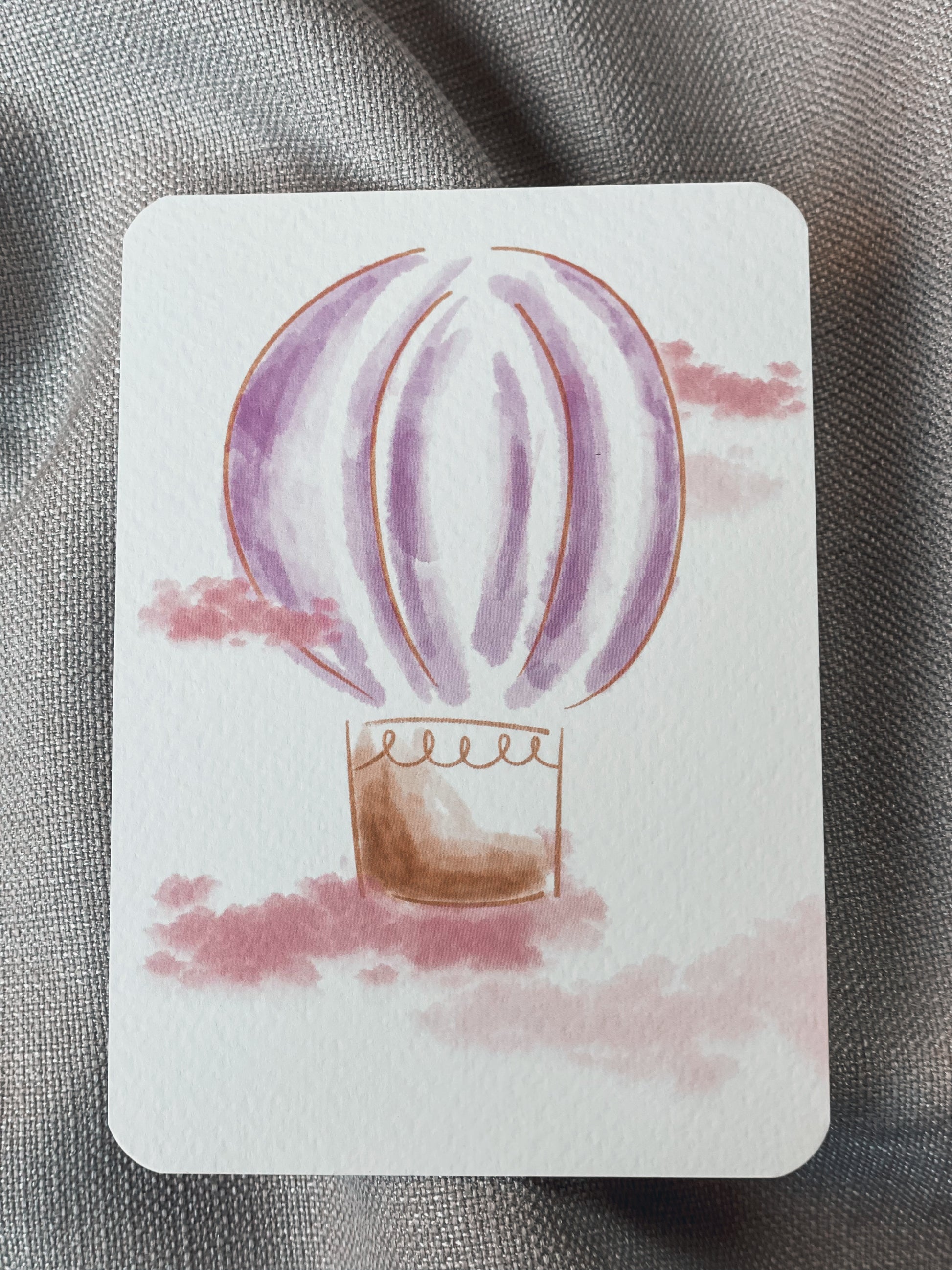 Wenskaarten in A6 formaat met ronde hoeken en bijpassende kraft enveloppe. De kaarten zijn eigen ontwerp en illustratie.