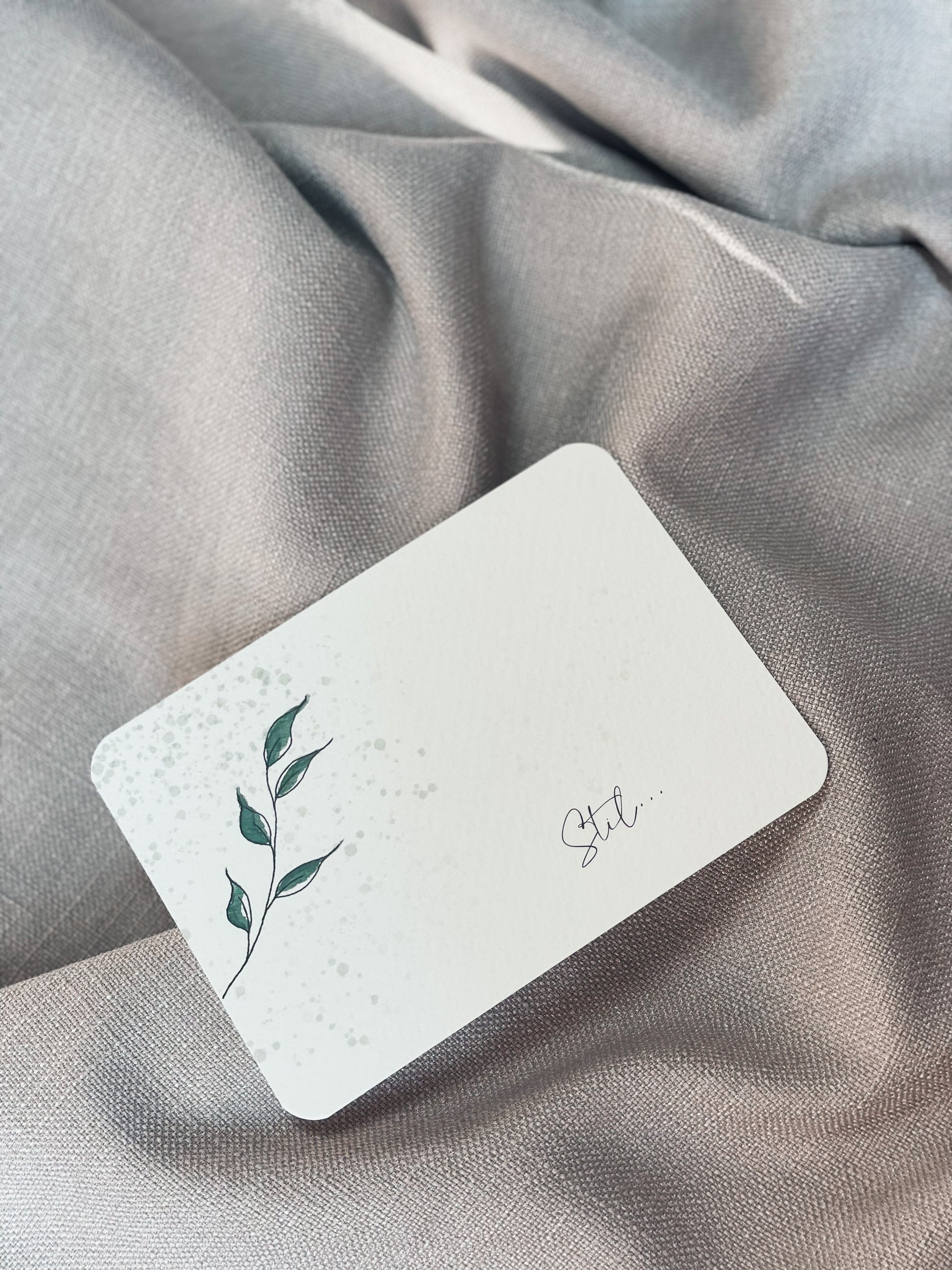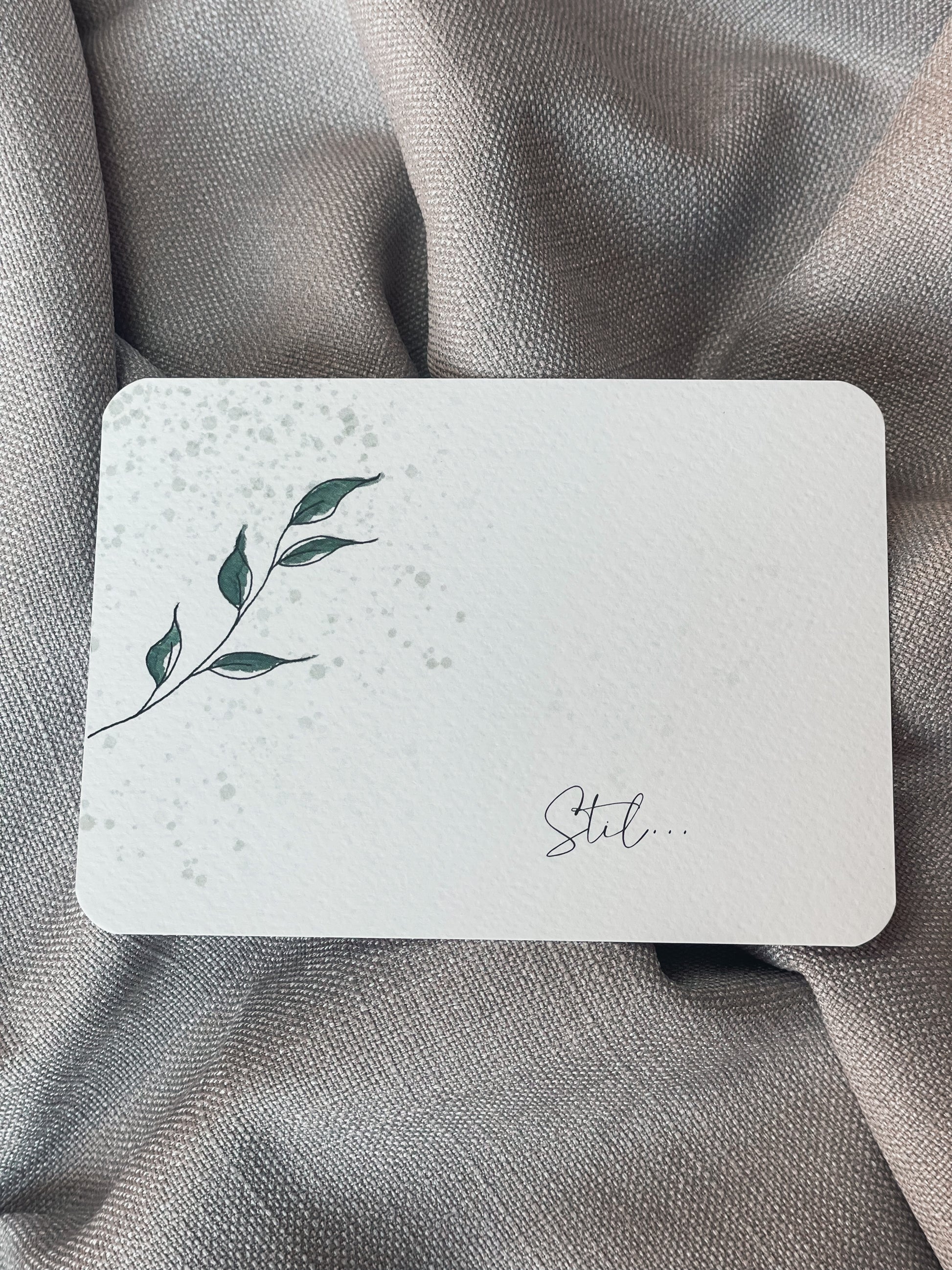 Wenskaarten in A6 formaat met ronde hoeken en bijpassende kraft enveloppe. De kaarten zijn eigen ontwerp en illustratie.